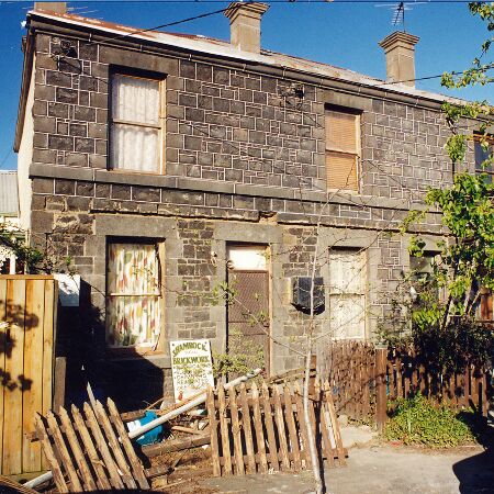 The rotted timber picket fence has been replaced with a period style cast iron fence, which sits on a vaulted round-top bluestone base, commissioned from a Port Fairy quarry. The return verandah has been raised to meet the first floor string course, improving the proportions and allowing greater light penetration to the ground floor. It is built with concave sheets of galvanised steel sheet, flashed with lead to follow the curve in keeping with the period. The dissimilar metal is kept isolated from the main roof which has been replaced with corrugated zincalum.