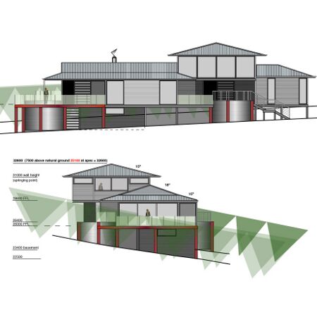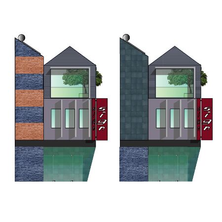 alternate east elevations for solar-powered concrete framed steel & stone clad offices