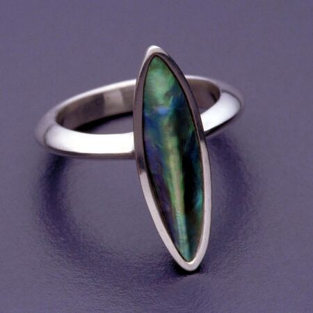 a paua shell and sterling silver ring, using the boat shape I am so fond of
